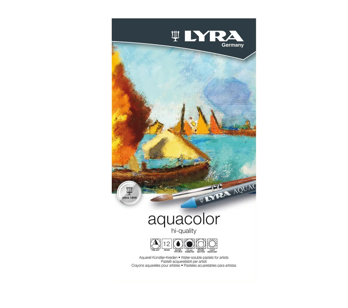 Lyra Aquacolour water-soluble wax pastels are richly pigmented, delivering vibrant hues and effortless blending. Their smooth texture allows for precise sketching, detailed painting, and stunning gradients. Durable and versatile, they’re perfect for artists looking to combine quality with creative expression.